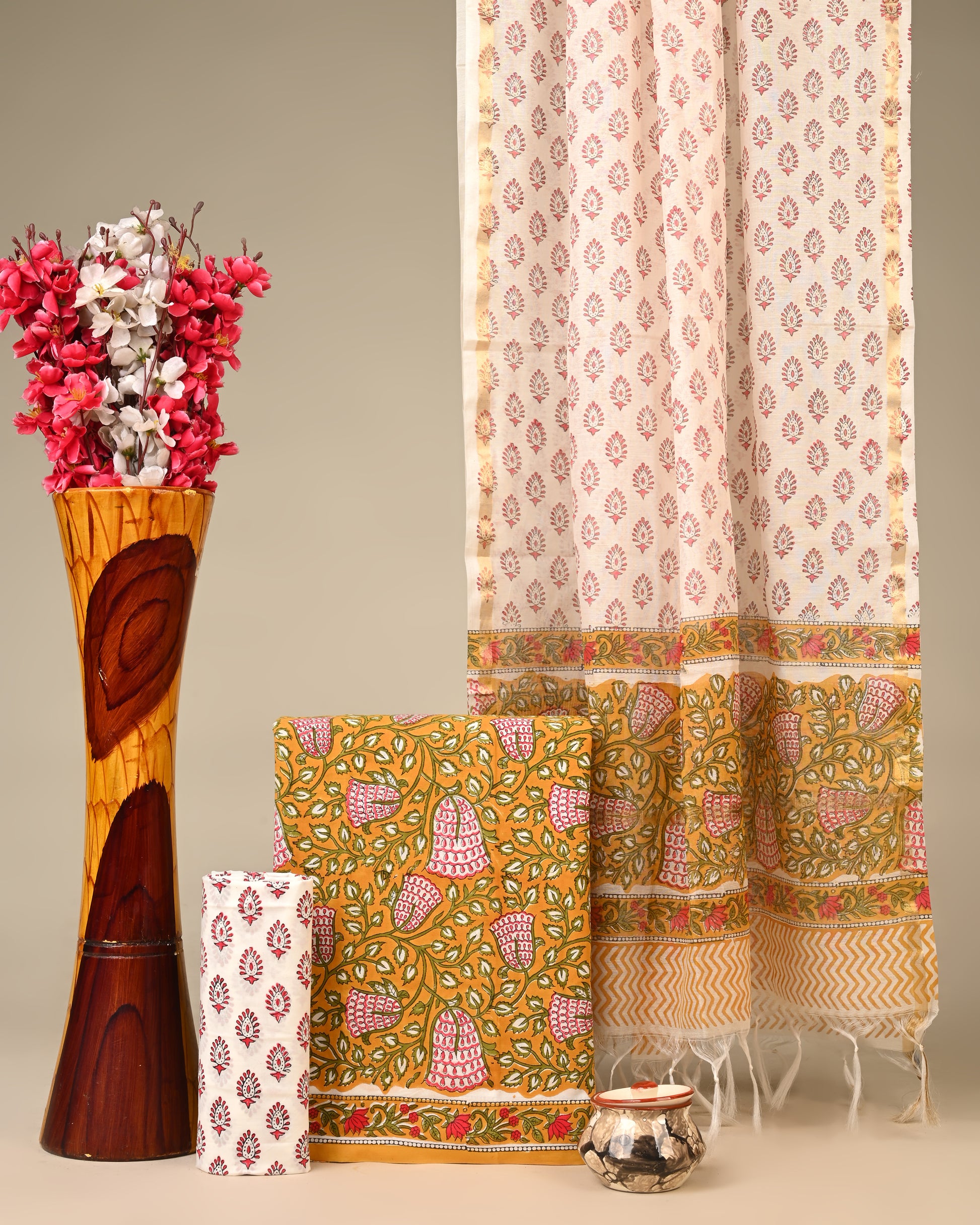 Dupatta: Chanderi Cotton Hand Block Printed (2.35 Mtr).