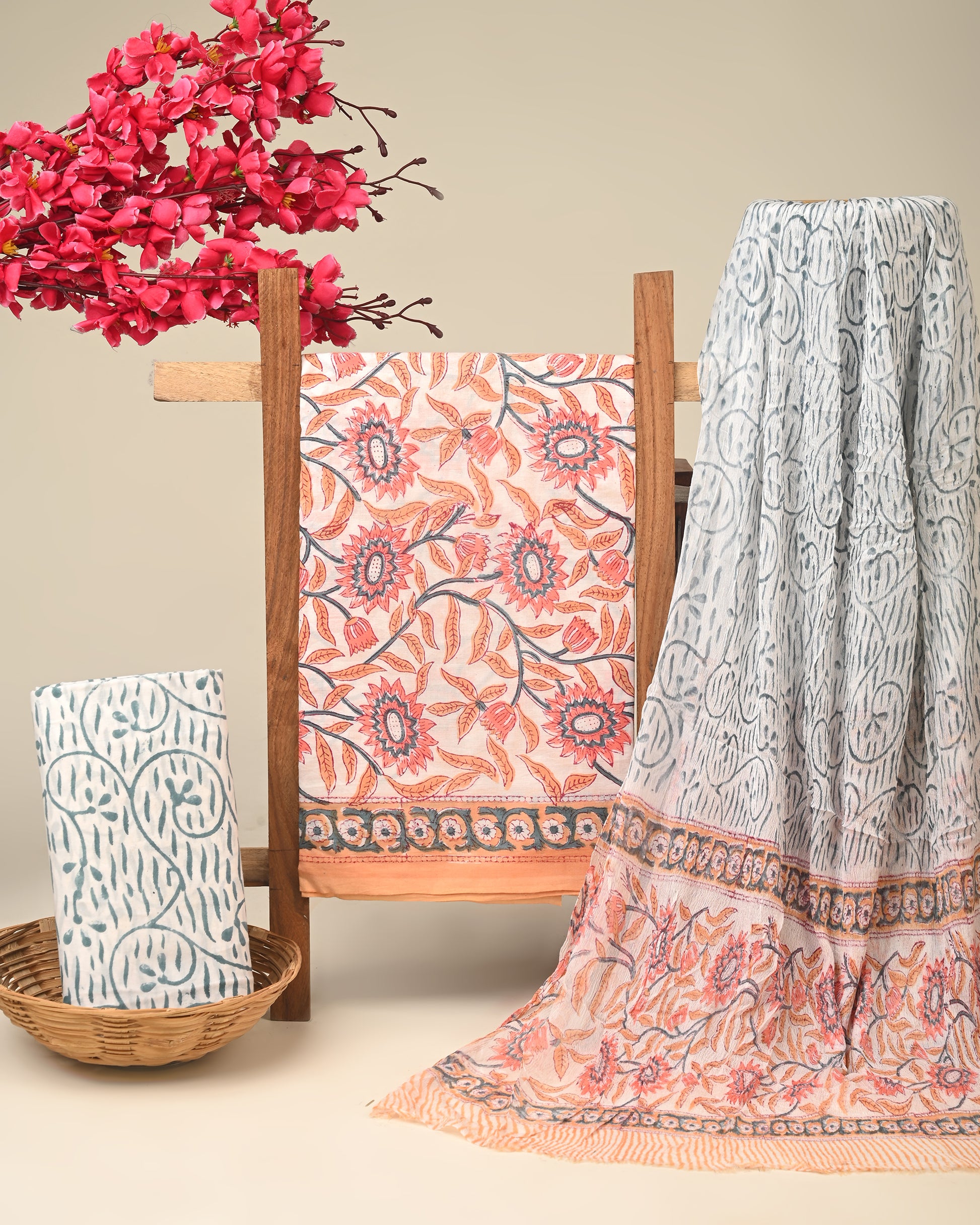 Bottom: Pure Cotton hand Block Printed (2.45 Mtr)