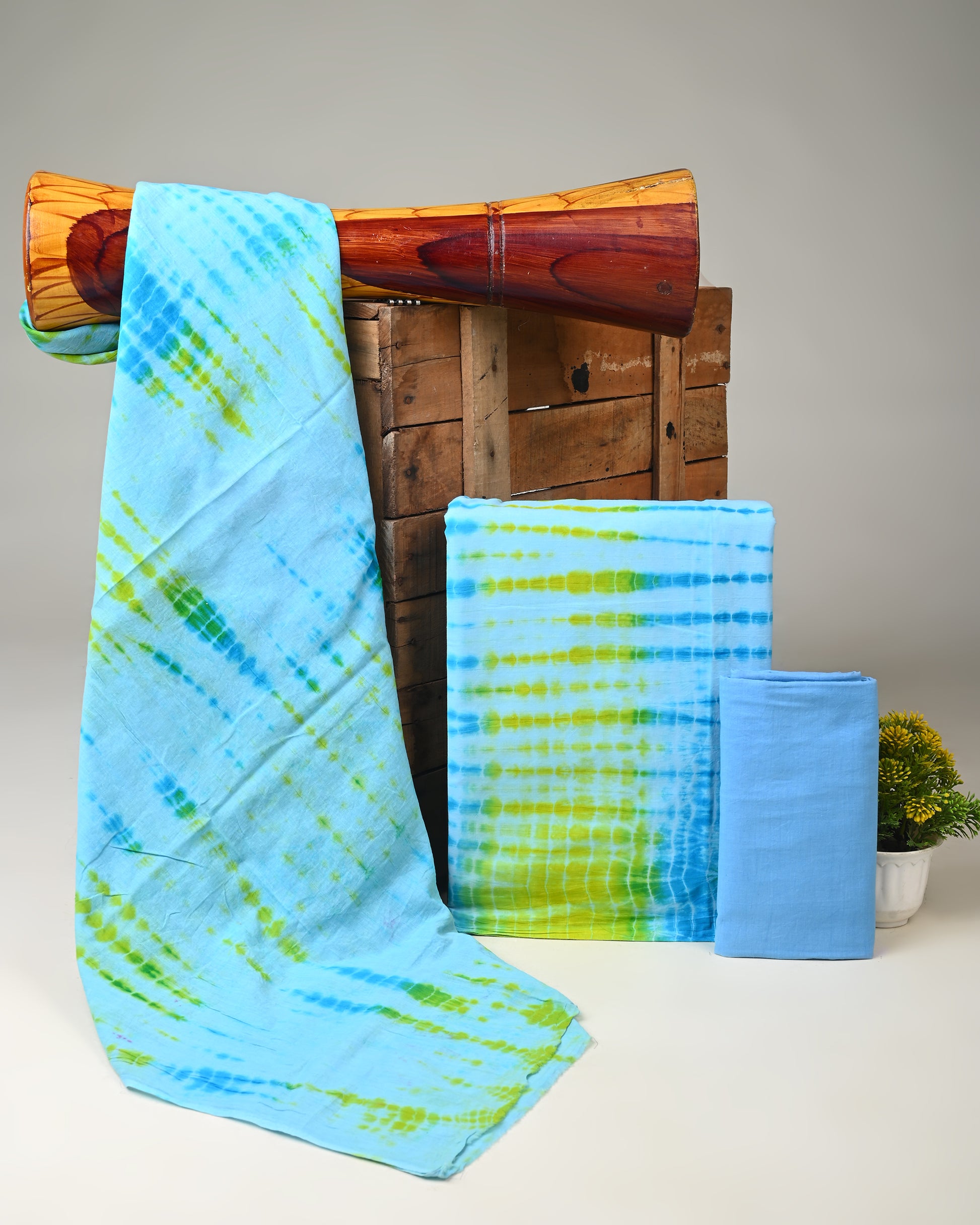 Blue unstitched printed pure cotton fabric or dress material top and bottom set for women for dress from tanchui having sangeneri print bagru print Jaipuri print