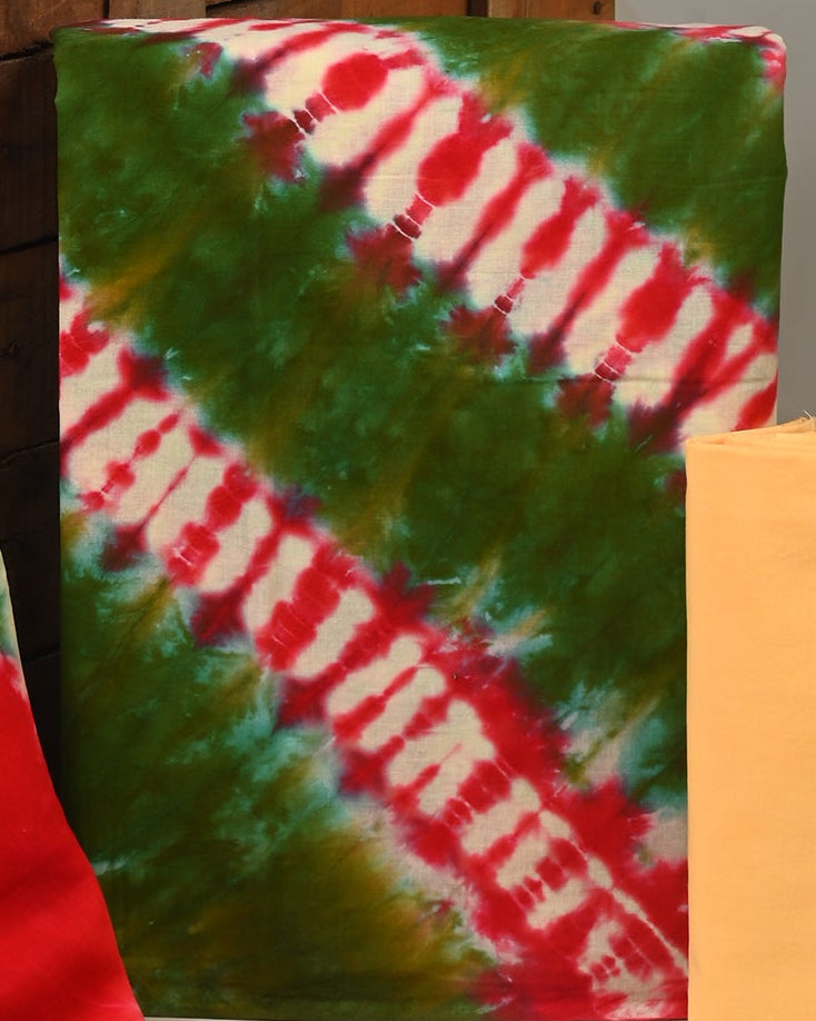 Green unstitched printed  pure cotton fabric or dress material top and bottom set for women for dress from tanchui having sangeneri print bagru print Jaipuri print