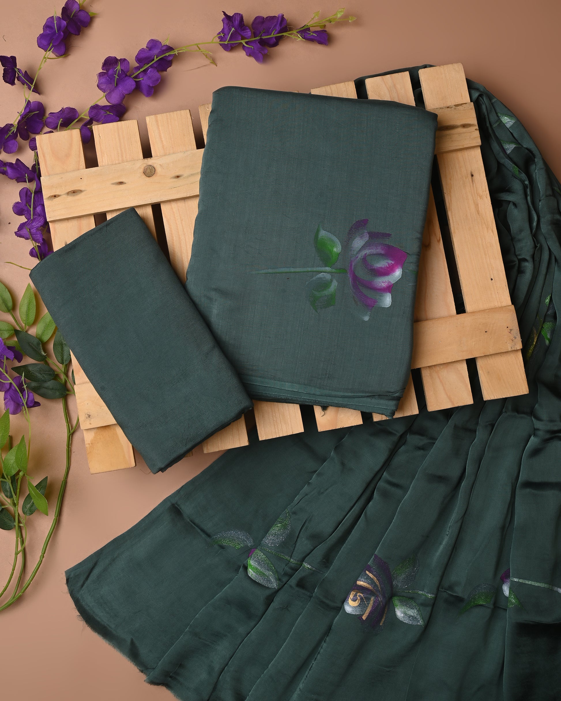 Green unstitched printed  pure cotton fabric or dress material top and bottom set for women for dress from tanchui having sangeneri print bagru print Jaipuri print