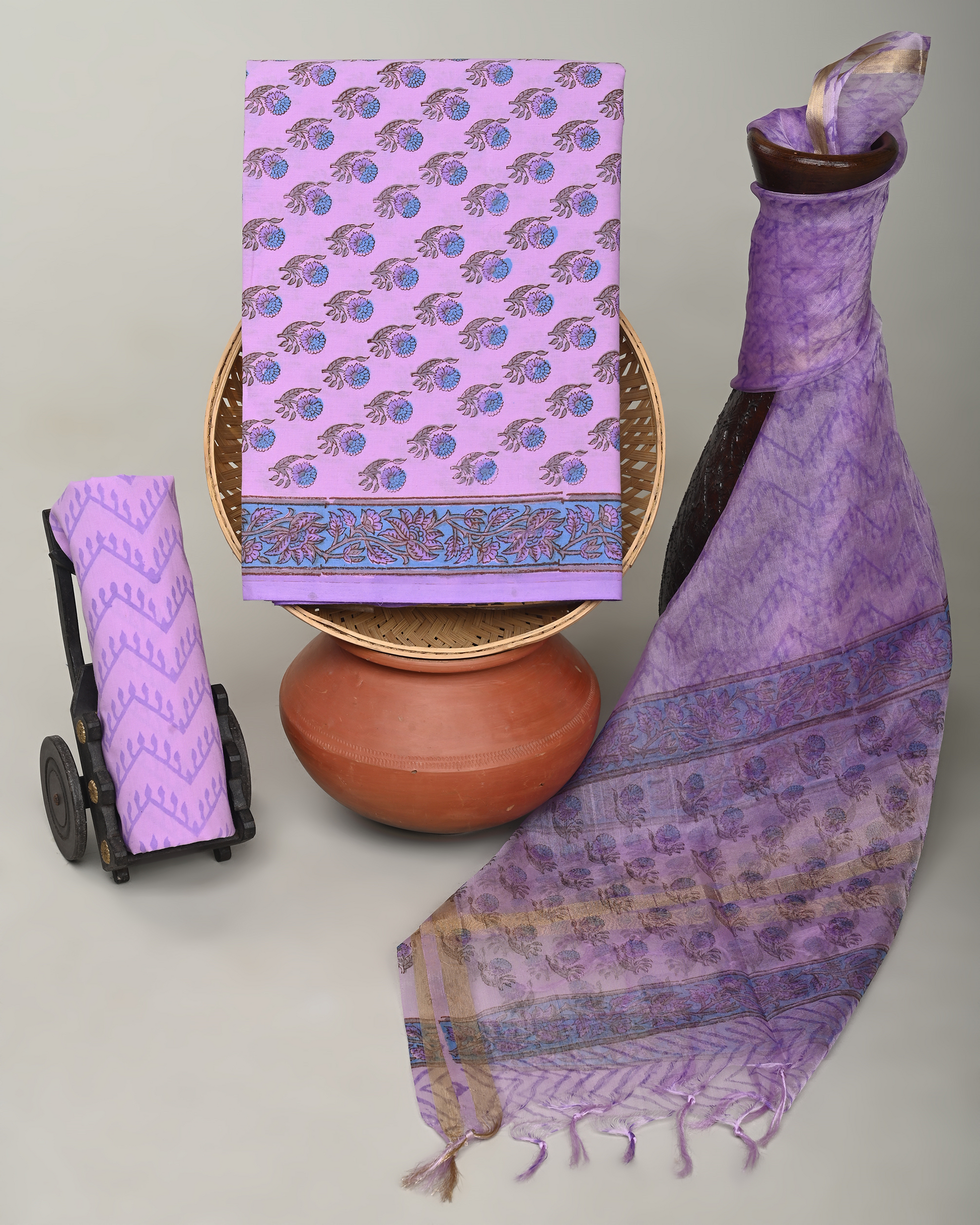 A Trending collection of ORGANZA DUPATTA COTTON SUIT with hand brush paint & hand block print to wear At Parties, Functions Or Just Casually Which Is Stylish & comfortable To Wear For Women. This Suit And You Will Be A Fashion Statement Every Time with Brand Of Tanchui.
