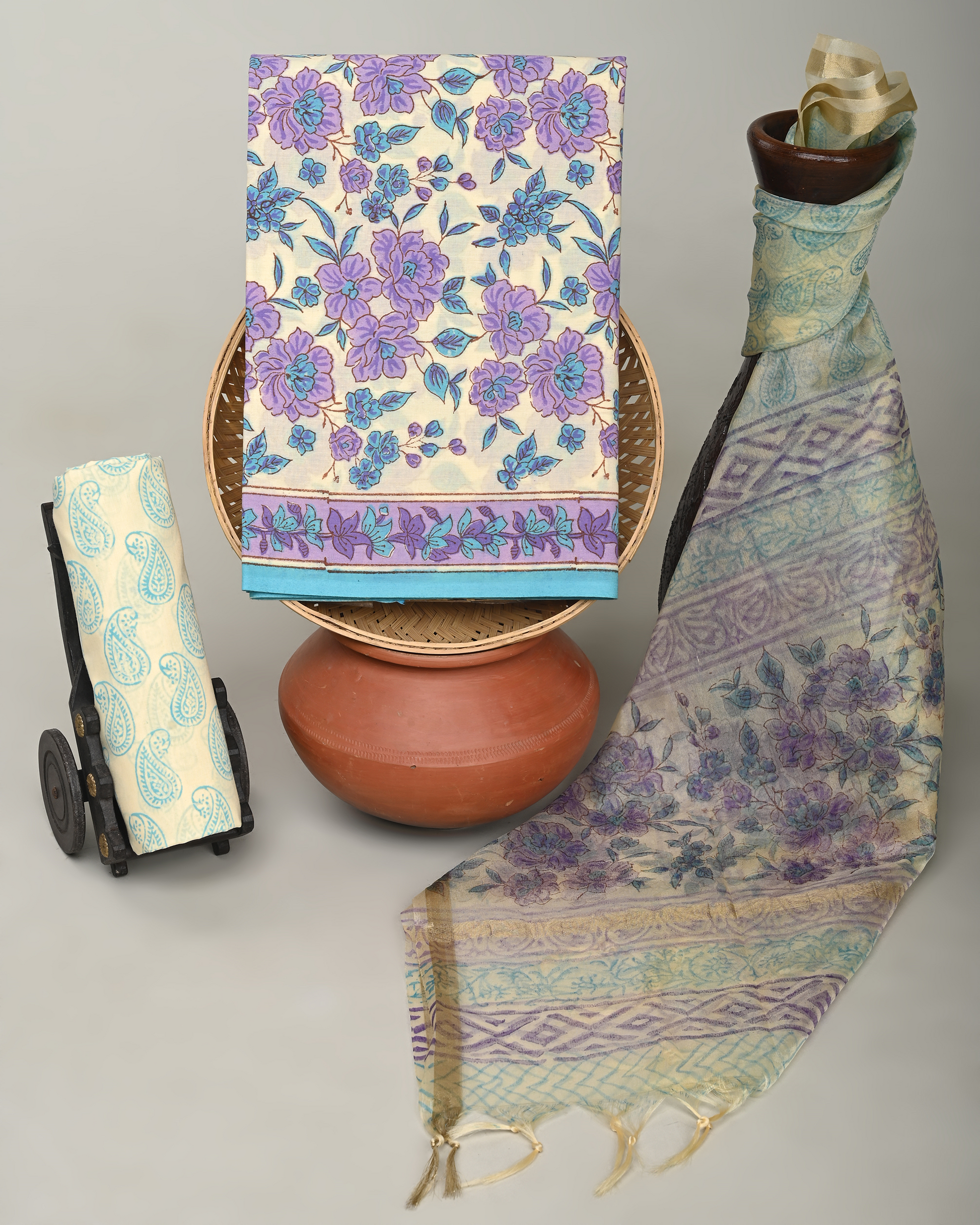 A Trending collection of ORGANZA DUPATTA COTTON SUIT with hand brush paint & hand block print to wear At Parties, Functions Or Just Casually Which Is Stylish & comfortable To Wear For Women. This Suit And You Will Be A Fashion Statement Every Time with Brand Of Tanchui.