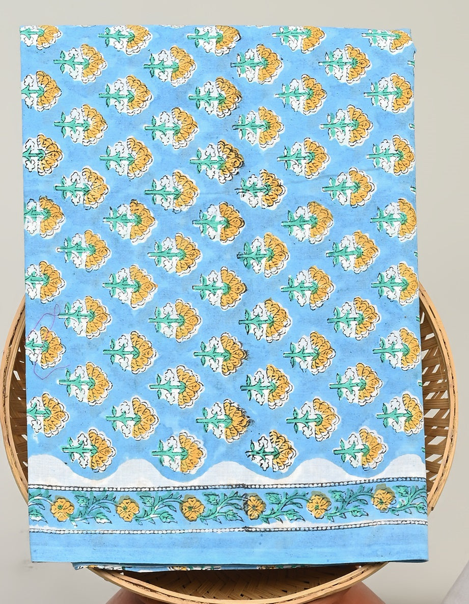 Blue unstitched printed pure cotton fabric or dress material top and bottom set for women for dress from tanchui having sangeneri print bagru print Jaipuri print