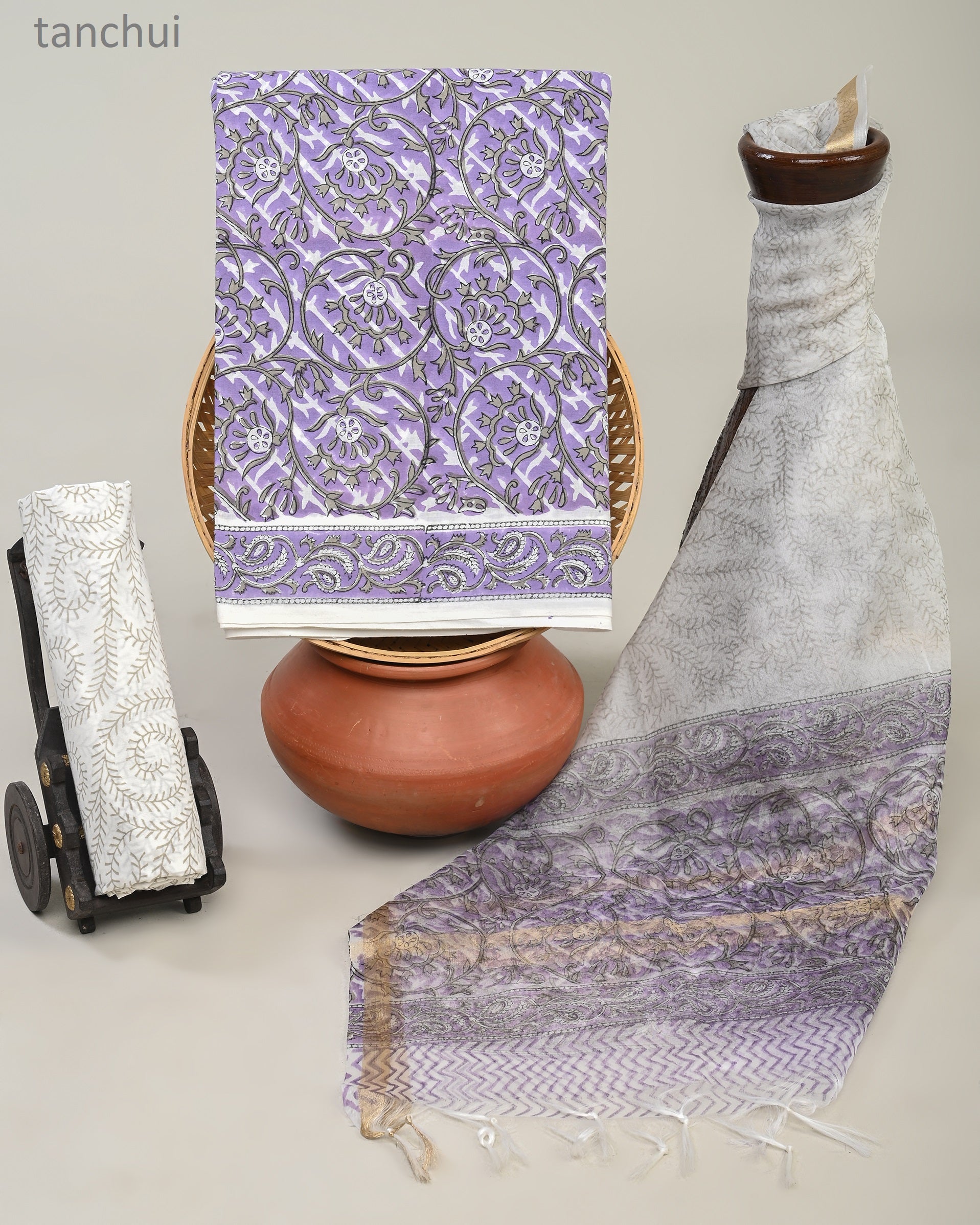 A Trending collection of ORGANZA DUPATTA COTTON SUIT with hand brush paint & hand block print to wear At Parties, Functions Or Just Casually Which Is Stylish & comfortable To Wear For Women. This Suit And You Will Be A Fashion Statement Every Time with Brand Of Tanchui.