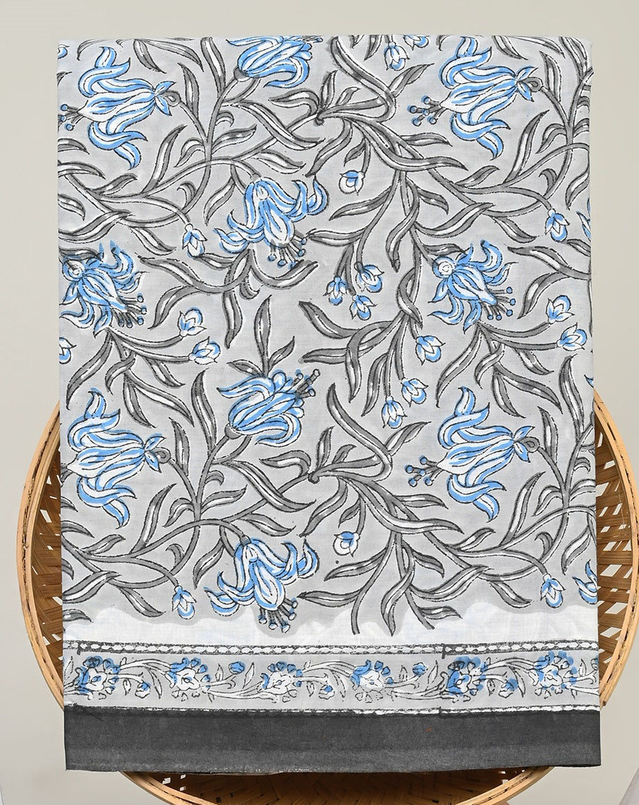 Blue unstitched printed  pure cotton fabric or dress material top and bottom set for women for dress from tanchui having sangeneri print bagru print Jaipuri print