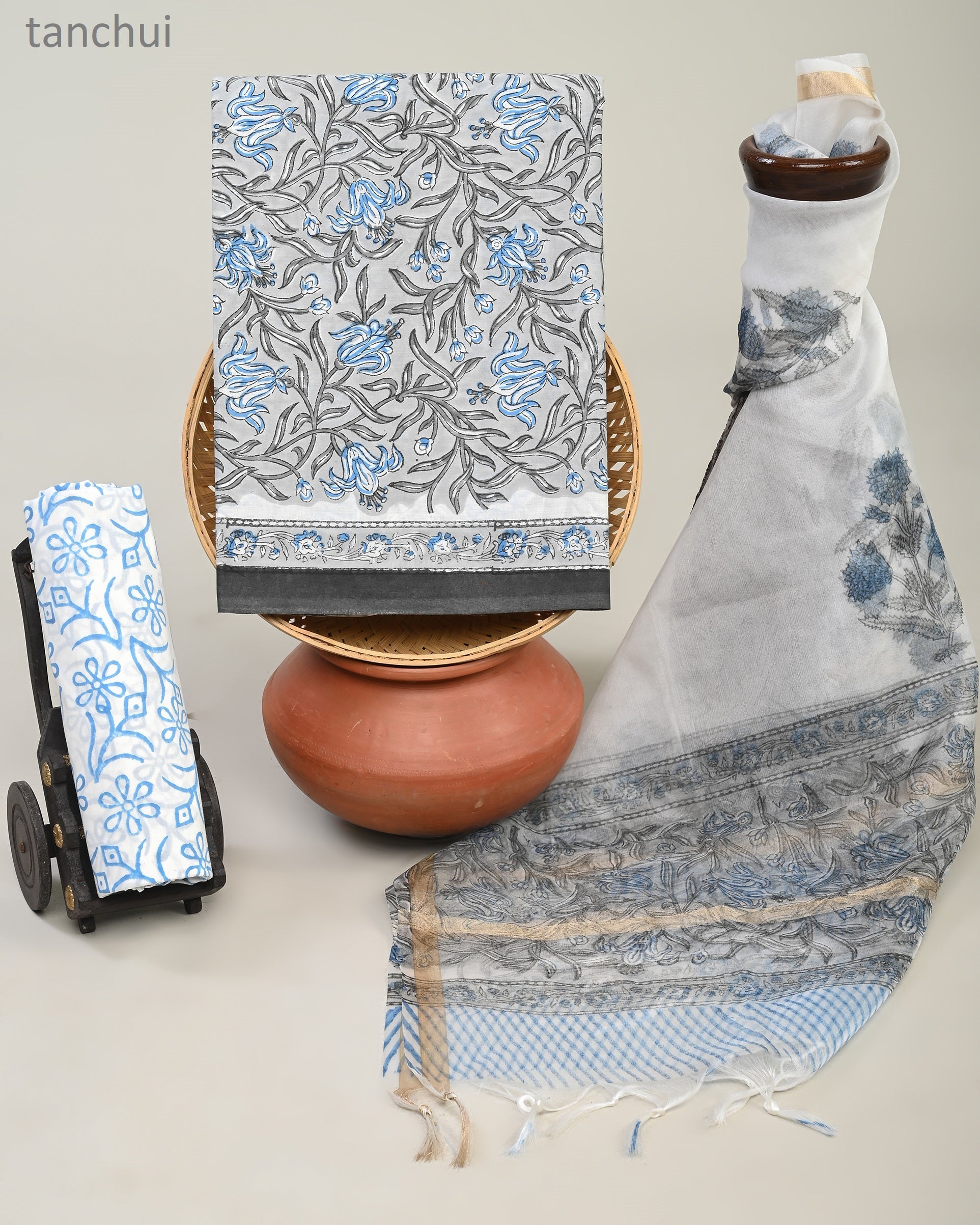 A Trending collection of ORGANZA DUPATTA COTTON SUIT with hand brush paint & hand block print to wear At Parties, Functions Or Just Casually Which Is Stylish & comfortable To Wear For Women. This Suit And You Will Be A Fashion Statement Every Time with Brand Of Tanchui.