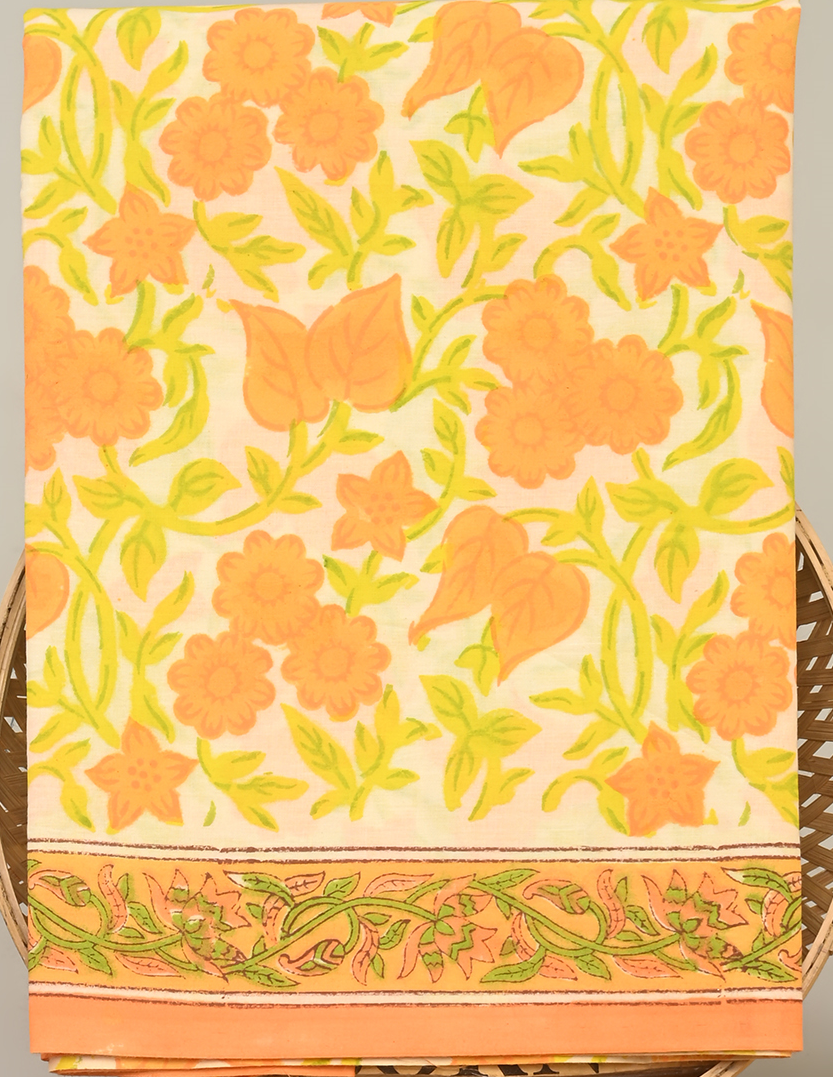 Yellow unstitched printed  pure cotton fabric or dress material top and bottom set for women for dress from tanchui having sangeneri print bagru print Jaipuri print