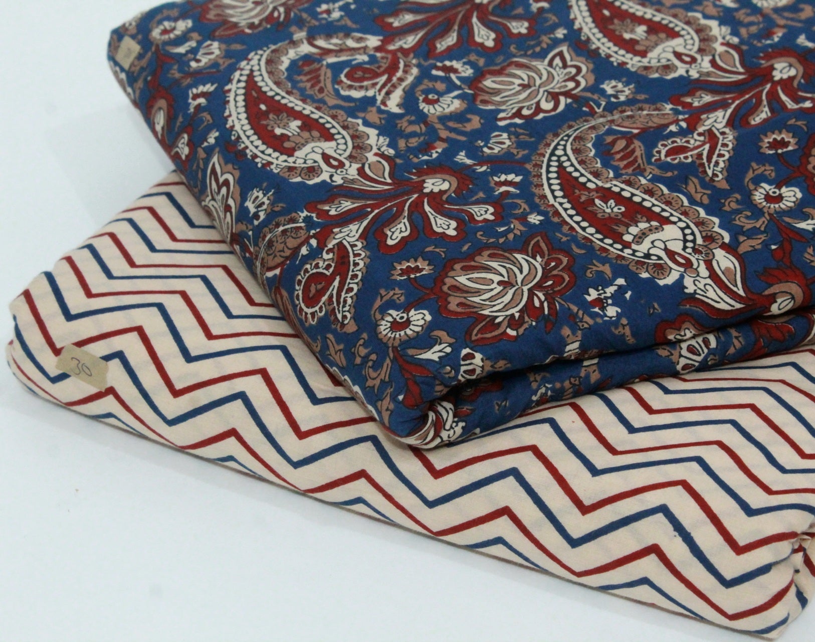 Pure Cotton Combo Set. Our combo set includes a Top And Bottom Set For Women featuring exquisite prints like Sanganeri Print, Bagru Print and Jaipuri Print. The Unstitched Printed Pure Cotton Dress Materials / Suit Fabric / Churidar Material  offers versatility, allowing you to create your own unique look.