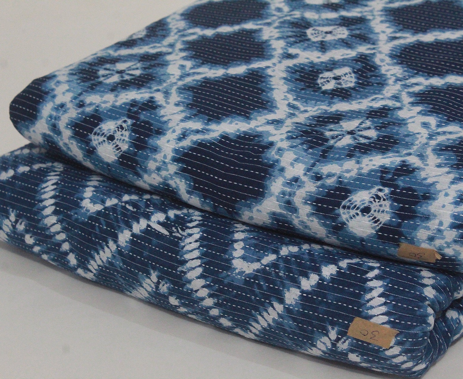 Blue unstitched printed pure cotton fabric or dress material top and bottom set for women for dress from tanchui having sangeneri print bagru print Jaipuri print